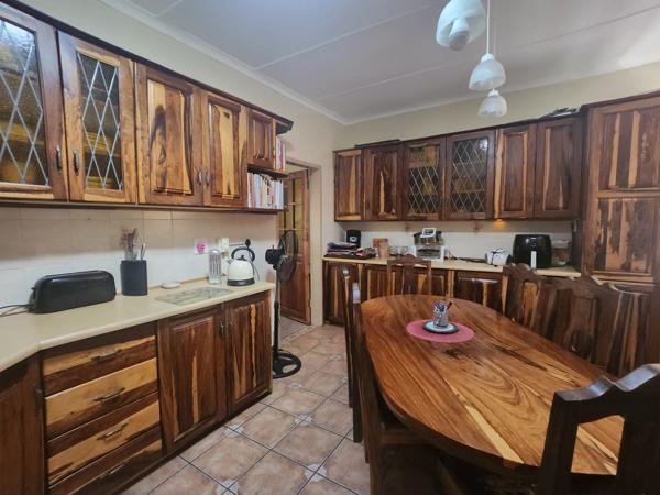 This stunning property has a family room/TV room with a laminated floor very spacious and comes with an anthracite stove. The bedrooms each have built-in cherry wood cupboards with carpet flooring. The main bedroom is big and has ample cupboard space and comes with an ensuite bathroom with a bath, basin, toilet, and shower. The neat kitchen area comes with beautiful Yellow wood and Imbuia wood cupboards and also comes with a built-in double oven and gas hob, the kitchen also comes with a separate laundry and scullery The separate dining room is also very spacious and can fit an 8/10 seater with comfort. A Second living area with a fireplace walks out to the lovely indoor braai/entertainment area, which overlooks the splash pool. The study can be easily divided into bedroom. The spacious granny flat part comes with an open-plan living area, dining area, and kitchen area and can be entered from the outside with a parking space for two vehicles.