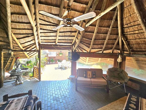 The unique flow of the house gives you easy access to the front garden area and the back garden area that is offering a thatch roof lapa with built-in braai and private courtyard area ideal to entertain family and friends.