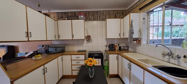 The kitchen offers ample cupboard space.