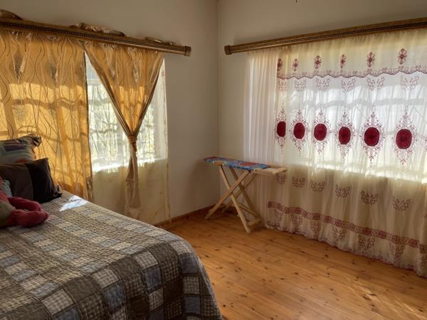 This home consists of 4 bedrooms with plenty of built-in cupboards, 2 bathrooms, one of which is en-suite. Spacious dining and living room with built-in fireplace for cold winter nights. The kitchen has beautiful original wood cupboards and ample space. It also has a separate scullery and washing room.