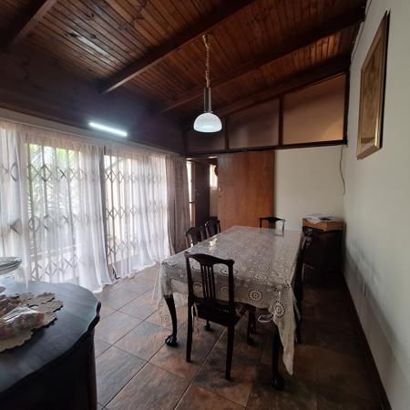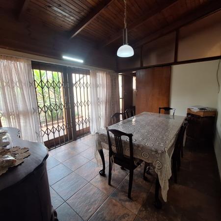 The layout is thoughtfully planned, with all the bedrooms on one side of the house and the shared living spaces on the other. The airy dining room also features double doors leading out to the garden, bringing in natural light and a seamless indoor-outdoor flow.