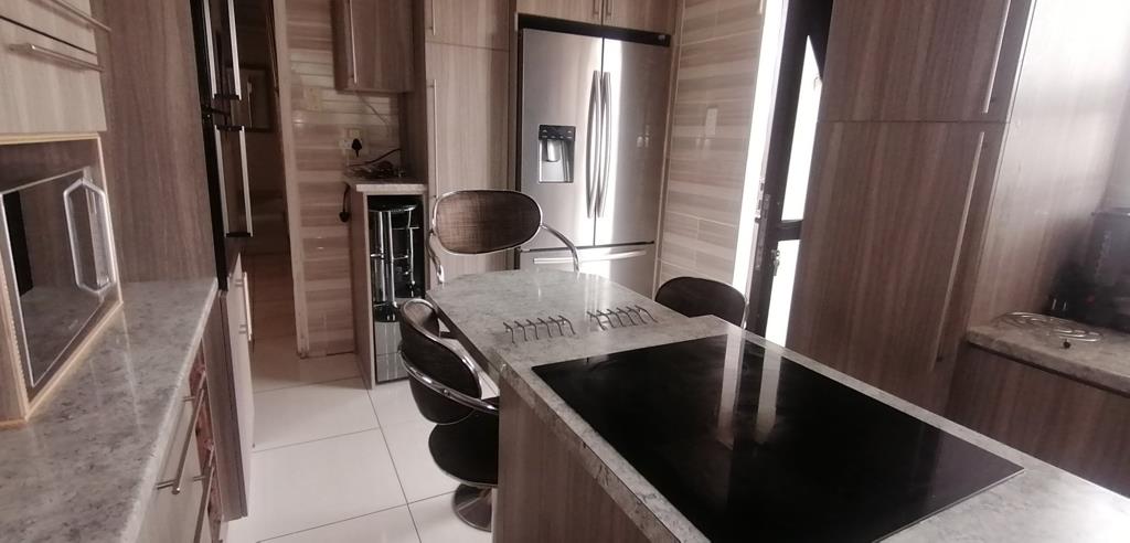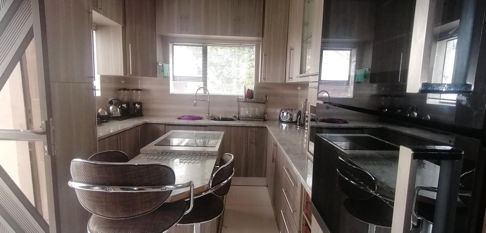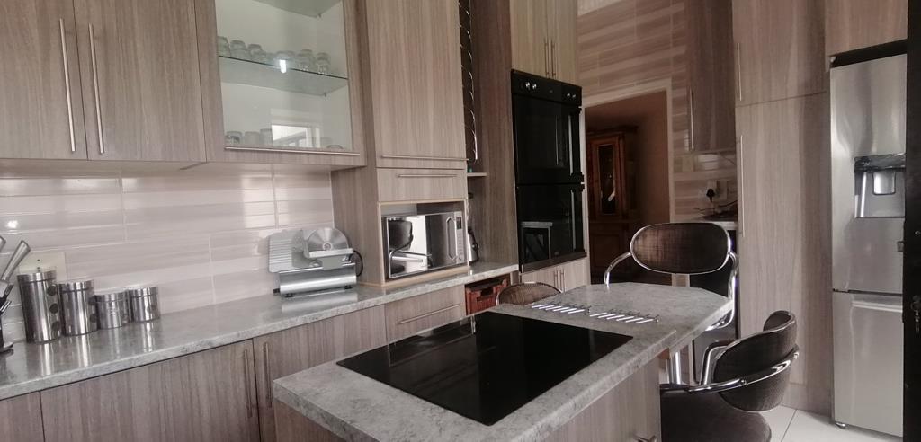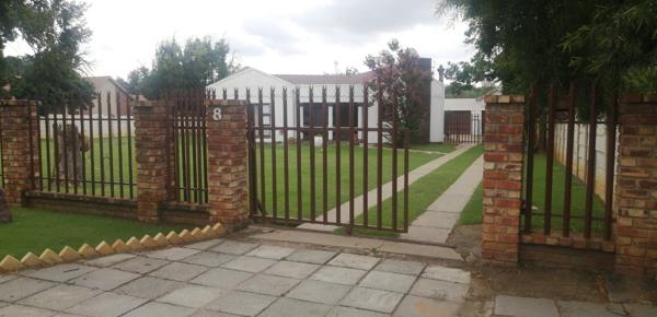 The spacious kitchen is a central hub, featuring built in cupboards, tiled floors, a dishwasher connection and a modern under counter oven, flowing into a dining area and a separate living space with tiled floors and ceiling fans. The home provides five bedrooms with practical storage and convenient curtain rails, while the bathrooms are neatly finished with tiled floors and full or partial suites. A dedicated family or TV room adds extra living space, perfect for gatherings. A double garage, secure parking options, and total fencing enhance everyday practicality and peace of mind. The outbuilding with staff quarters and a domestic bathroom adds flexibility for multi generational living or staff needs. Outside, the immaculate garden and paved paths create a welcoming curb appeal, while the satellite dish and cooling fans add modern touches. Pets are welcome, and the property is positioned to enjoy the balance of quiet suburban life with easy access to local amenities in Virginia. This is a home where everyday flow, comfort and space come together for a family that values both privacy and warmth.
