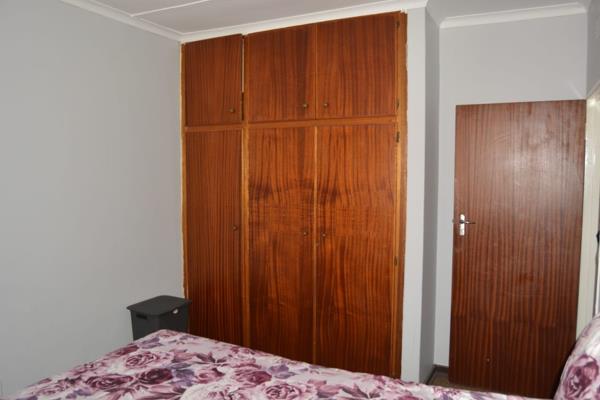 The carpeted bedrooms feature built-in cupboards and convenient curtain rails. The bathroom boasts tiled floors, along with a bath, basin, shower, and toilet. Nestled in the tranquil Dagbreek suburb of Welkom, this flat is perfect for those seeking a spacious, functional home with essential amenities in a serene, established neighborhood.