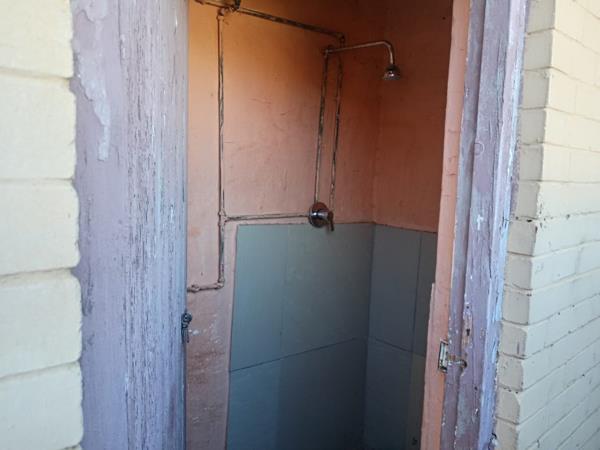 It has a one bedroom cottage with an open plan kitchen and dining area, an outside toilet and shower with aluminum windows and the house is surrounded by precon and palesade in front, a concrete driveway and a single garage.