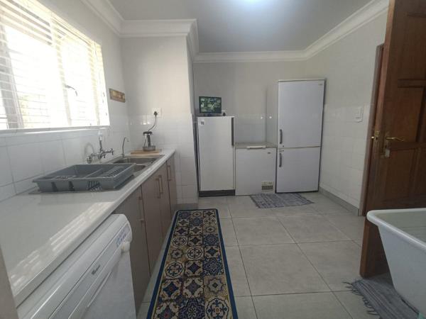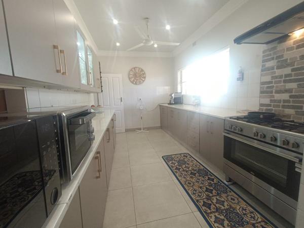 This newly renovated 5-bedroom, 3.5-bathroom home offers modern living at its finest, with a beautifully updated kitchen and bathrooms. The home is well-located and features spacious reception rooms, a lounge, and a TV room. The newly renovated kitchen is a chef''s dream with a gas oven, extractor fan, and scullery. Enjoy outdoor entertaining with a built-in braai, lapa, and a large garden complete with a trampoline. A large pool, paved outdoor area, and ample parking with 3 garages and 2 carports add to the appeal. The home is equipped with an inverter and solar panels for energy efficiency, plus air conditioning for comfort. Security is a top priority with automated garage doors, automated perimeter gate, burglar bars, and security doors. Pet-friendly with space for cats and dogs, the home also includes staff quarters, built-in cupboards, and a water tank for irrigation. The property is a single-storey, with plastered external walls, a tiled roof, and steel windows. Book your viewing today to see all this incredible home has to offer.