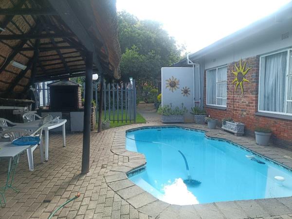 For those who love the outdoors, the property offers a heated sparkling pool, a lapa with a built-in braai, and a well-kept yard. A Wendy house provides handy storage for garden tools, while a Jojo tank ensures an additional water supply. The home is finished with charming wooden floors, a tiled roof, and a secure perimeter fence.