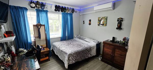 The home consists of four bedrooms and one bathroom. The tiled living and dining areas create a neat, low-maintenance space and are fitted with an air conditioner, projector, and fireplace, adding both comfort and character.