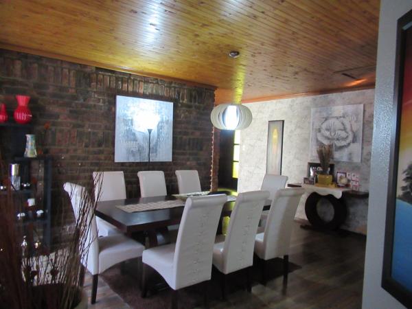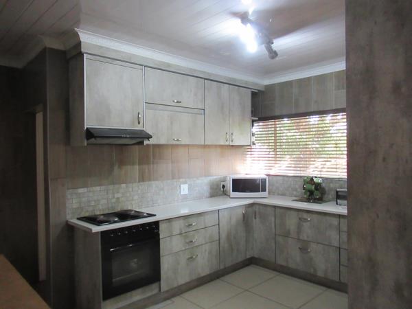 This low maintenance property offers 4 bedrooms, main with ensuite. Spacious 3 toilet, basin and bath. 3 living areas, bar, entertainment area. Kitchen open plan with wooden built-in cupboards and a scullery. Spacious entrance hall leading to the entertainment and braai area inside. Lapa, pool but not in good condition, however it can be repaired.