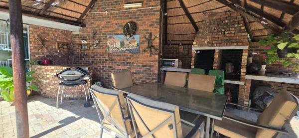 Outside, the home is ideal for entertaining, offering a Lapa with a built-in braai and bar counter perfect for hosting family and friends. The garden is low maintenance with established trees providing ample shade, along with a swimming pool for warm summer days.