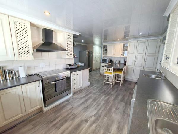 For those who love vehicles or need extra storage, the two-car garage with an automatic door and additional covered parking provides ample space. The interior features a hob and kitchen-dinette, offering generous cooking and dining options. Loadshedding and watershedding will be a distant memory as the 10 KVA inverter and battery with 12 solar panels along with the 5000l jojo tank and borehole is more than sufficient to meet your and your family s needs.