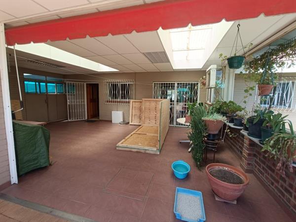 Spacious 4-bedroom family home in Welkom featuring 2 lovely bathrooms, a dining area overlooking a beautiful back garden, and a lounge with a built-in bar for entertaining. The kitchen boasts olive wood cupboards. The highlight of this property is its stunning garden, including a large vegetable garden.