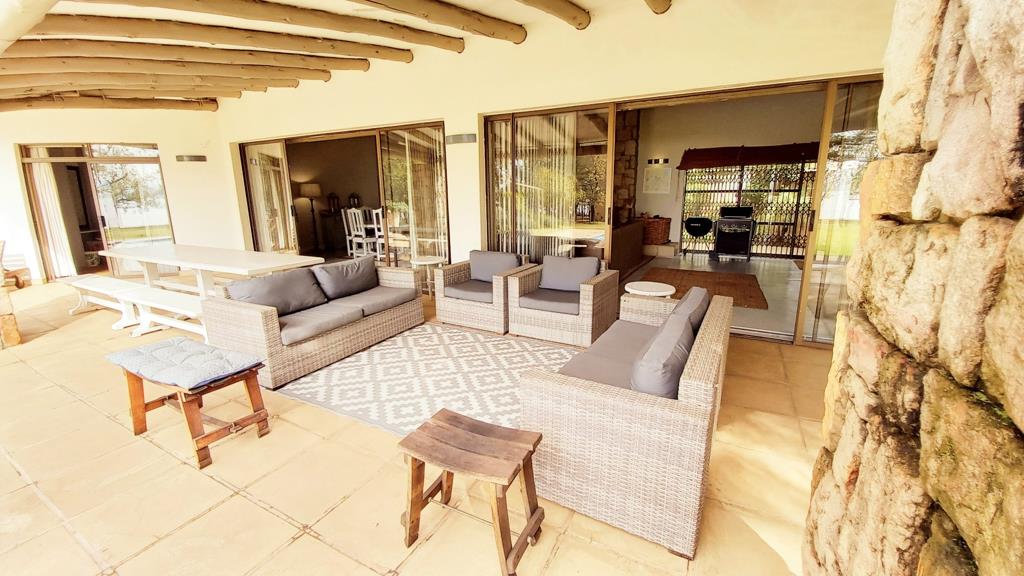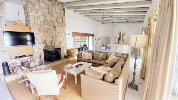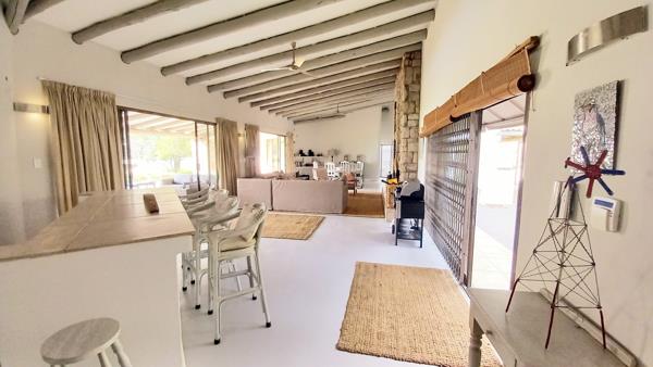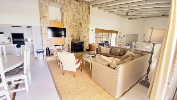 The living and lounge area is well spaced with a lovely large wood fire place for those chilly evenings, with its open layout and large sliding doors which open out to the undercover patio area for that indooroutdoor living, With an outdoor braai and boma area next to the newly renovated swimming pool.