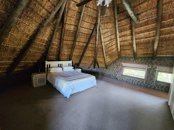 Welcome to this beautiful and amazing double-story Thatch roof home, set in the Vaal Dam Peninsula Estate with your personal 100m waterfront on a 1.4-hectare piece of land.