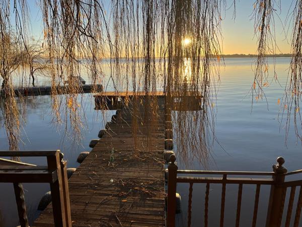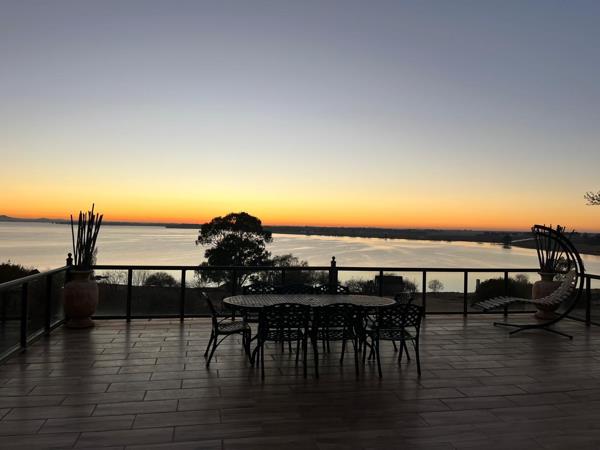 Indoor braai with stacking doors leading you outside to a patio overlooking the beautiful waters.