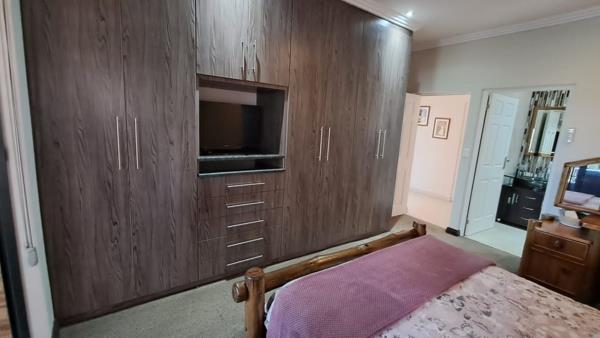 Step outside to an entertainers paradise, where a sparkling swimming pool invites you to relax and unwind. With two double garages, there is ample space for your vehicles and extra storage. This home is designed for sustainable and secure living, featuring a top-of-the-line security system, solar power, and a borehole to ensure uninterrupted water supply.