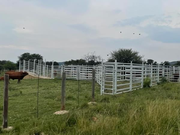 Cattle kraal with handling facilities including 5 separation pens, a loading bank, a covered crush with dip sprayers and an electronic scale with a nek clamp.