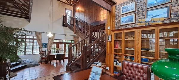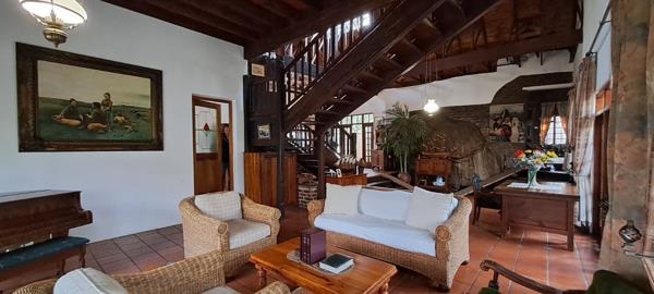 The estate features a large workshop, a barn for animal feed, and two labor houses - one with 3 bedrooms and the other with 1 bedroom, both equipped with electricity, warm water, and DSTV. Additionally, there''s a main house, a guest house, and a guest cottage on the property. The main house is double-story with 3 bedrooms, 3 bathrooms, two lounges, a large kitchen with laundry facilities, a study, air conditioning, ceiling fans, heated-towel rails, and under-floor heating. The property also includes a swimming pool, entertainment patio, double garage, electrical fence, automatic entrance gate, and a professionally landscaped garden spanning 2 hectares with an irrigation system.