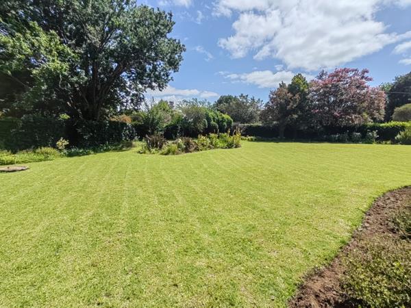 Step outside to a large covered patio with a braai, offering picturesque views of the meticulously maintained garden.