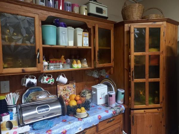 Lovely big kitchen with beautiful oak cabinets and a big table matching the cabinets.
