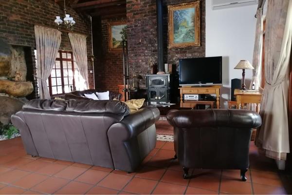 Main HouseArchitecture: Impressive large double-story home with a 45-degree slat roof.Bedrooms: 3 en-suite bedrooms.Entertainment Areas: 2 large entertainment areas.Garage: Double garage with additional parking.Kitchen: Large, comfortable farm kitchen leading off the double garages.Amenities: Swimming pool with lapa, entertainment area, and viewing deck.Climate Control: Air conditioning and underfloor heating in both main and guest houses.