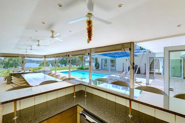 Featuring a spacious and uncomplicated indoor living space that offers a well-appointed kitchen, dining and lounge area that easily transitions through large stacker doors to the outdoor wrap-around patio ideal for entertaining friends and family, offering a swimming pool, bar, dining area and lounge with fireplace all offering spectacular garden and river views.