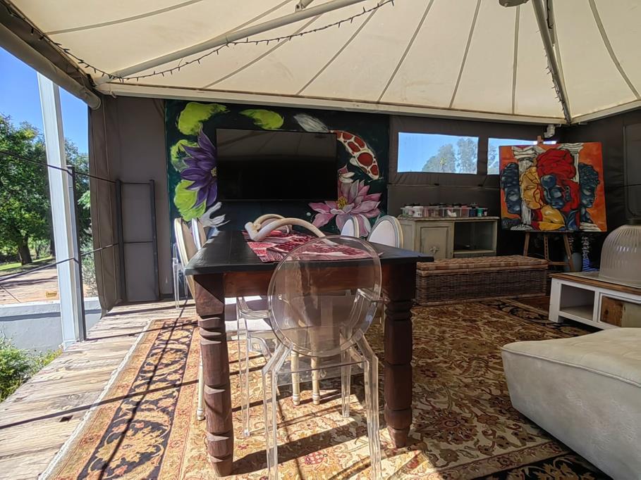 Additional highlights include a rental solar system with 18 solar panels, an 8kVa inverter, and 3 batteries, which can be transferred to the new owner. The property features prepaid electricity and a security system, including beams, an electric fence, and an alarm system as well as 4 water tanks with filters and pressure pump.
