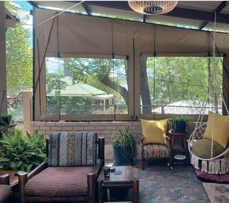 Lounge, 1 bedroom, 1 bathroom, kitchen, single carport, outdoor entertainment patio with roll-up curtains and a braai, pre-paid electricity, JoJo tank & pump, sand filter, new sewerage and water pipes.