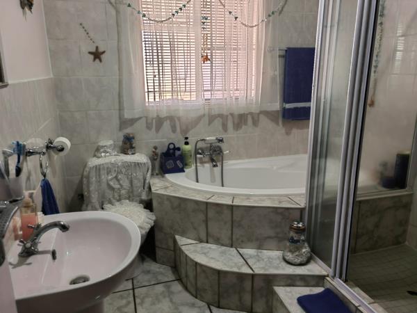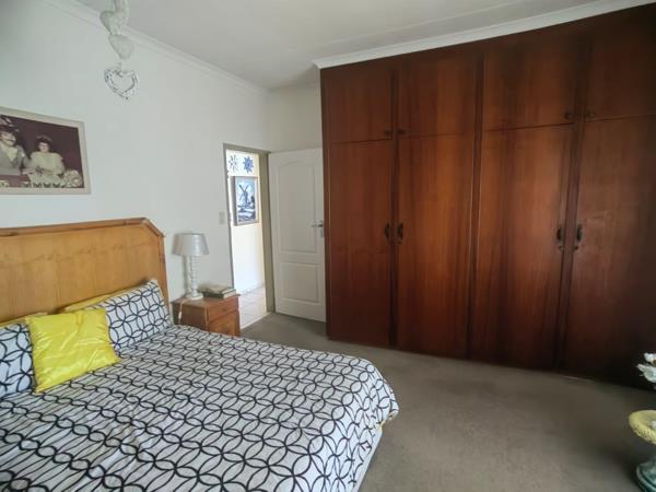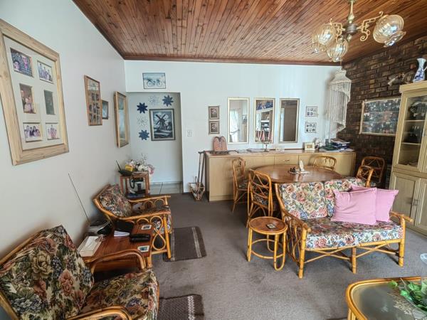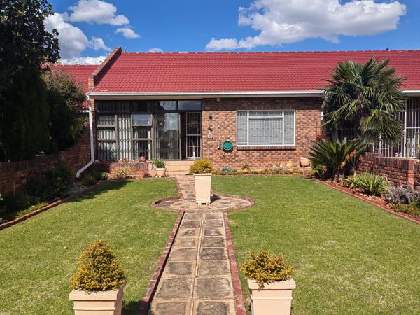 This charming townhouse is one of eight in a well-maintained complex. It features two bedrooms, both equipped with built-in cupboards. The full bathroom has been recently renovated and includes a relaxing corner bath. The open-plan lounge and dining area create a welcoming atmosphere, leading to a delightful sunroom with aluminum windows and a sliding door, secured with trellises for added peace of mind.