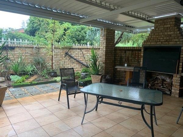 The home offers 3 bedrooms, 2 bathrooms, a lounge, diner, a TV room, a magnificent garden court/braai patio, a study, etc. Braai patio has a built-in braai, and the kitchen and the bathrooms have some of the finest trimmings and are very modern.
