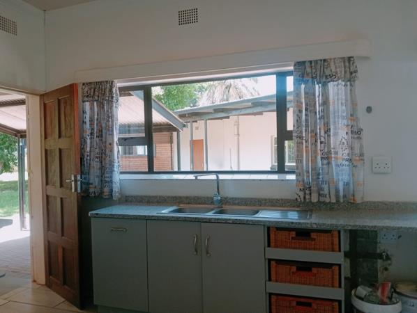 The welcoming living room flows seamlessly to the sun-stoep, creating a warm and inviting atmosphereperfect for relaxation or hosting guests.