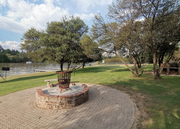 A cozy bonfire area and a childrens play area by the river, perfect for family gatherings.