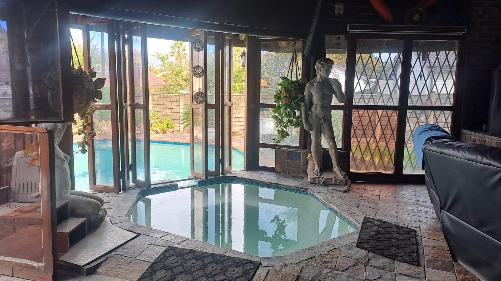 The entertainment area has a built-in braai, built-in bar, heated jacuzzi and lots of space for friends and family. There are stacker doors which opens up to the outside pool. The property has a very strong borehole, JOJO tanks, caravan undercover parking, double automated garaged and a double carport.