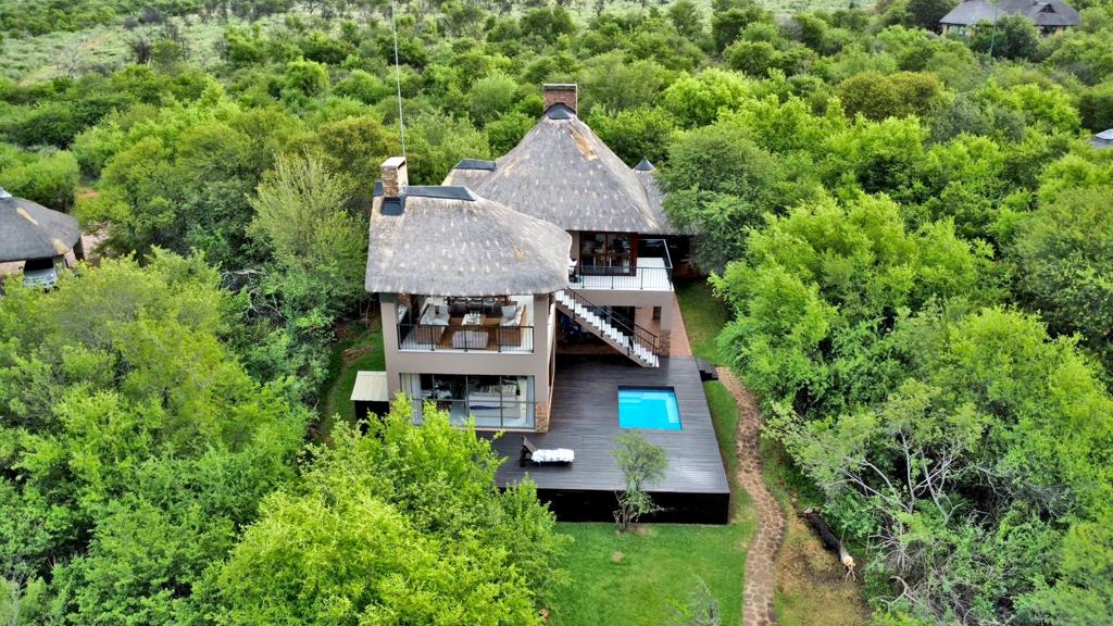 On the ground level, the entrance, three bedrooms and two bathrooms, main-en-suite, welcomes you with beautiful views of the bushveld/river. Large glass doors from two of the bedrooms open onto the pool deck and entertainment area.