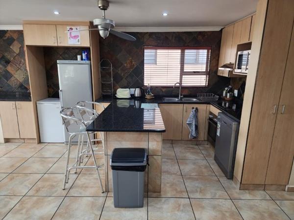 . Large paved & open grassed area in-front of unit with braai & large umbrella.