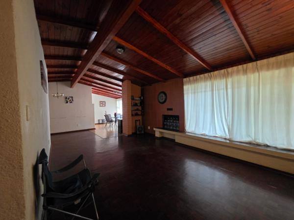 This charming 3-bedroom, 2-bathroom suburban home, nestled in Sasolburg Ext 15, offers a unique blend of character and spacious living on a generous 1199 sqm erf. The property immediately impresses with its distinctive architectural elements, including striking vaulted wooden ceilings that feature prominently throughout the interior, creating a warm and inviting atmosphere.