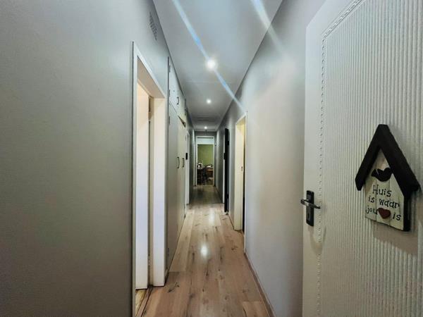 Entertain in style with a generous dining room that flows seamlessly into the lounge, creating a perfect space for gatherings. The kitchen is a chefs delight, featuring a scullery for added functionality. Natural light floods the interior, highlighting the beautiful laminated and tiled floors throughout the home.
