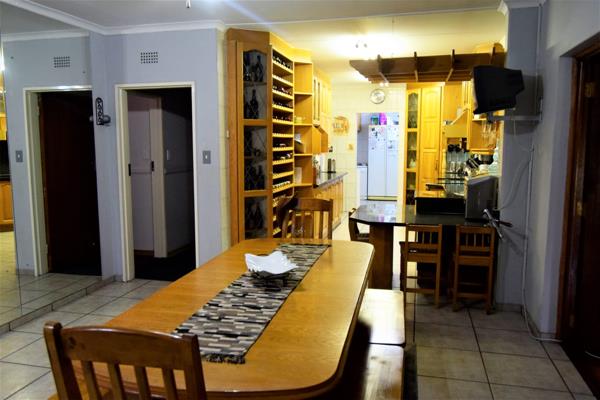 Entertain in style with a stunning heated swimming pool, a jacuzzi, and a well-appointed bar area, all complemented by an inviting boma perfect for small gatherings or grand celebrations. The property offers an abundance of parking space, featuring a spacious 4-car garage and two additional covered carports, ensuring secure accommodation for multiple vehicles. Safety and privacy are paramount, with Spanish bars on all windows and Trelli doors providing enhanced security throughout the home.