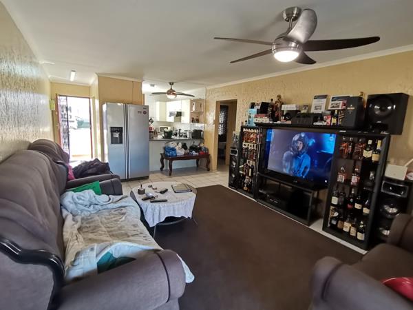 Spacious lounge andamp dining room,open plan with ceiling fan