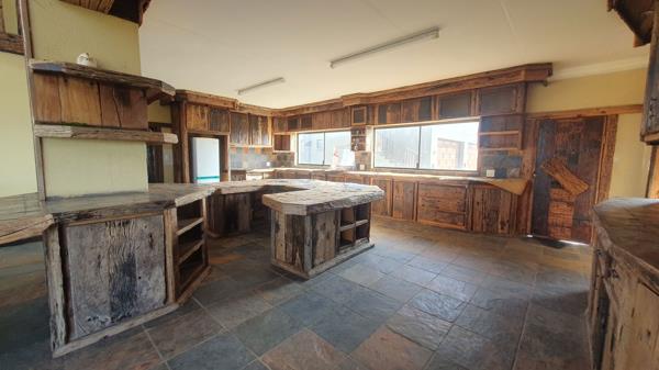 Open plan kitchen with ample cupboard space, a scullery and pantry.