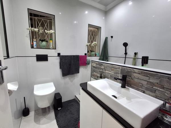 This inviting 3-bedroom, 2-bathroom residence in Vaalpark, Sasolburg, offers a generous 1053 sqm erf, perfect for family living and entertaining. The interior boasts a spacious open-plan layout, seamlessly connecting the dining and living areas, both featuring durable tiled flooring and practical window blinds. The lounge provides a comfortable space with dark leather sofas and a ceiling fan. The functional kitchen is equipped with extensive light wood cabinetry, speckled countertops, an integrated oven and hob, and modern wood-look laminate flooring. A dedicated study, gym, and laundry room add to the home''s practical appeal.