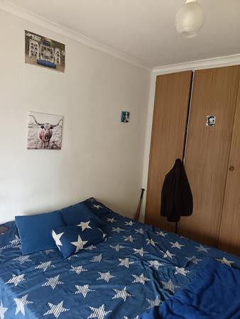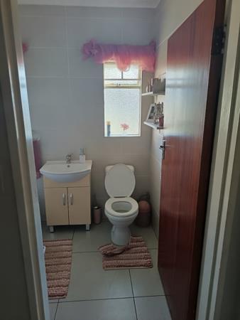 The residence comprises three comfortable bedrooms, each fitted with tiled flooring and benefiting from natural light, providing a serene retreat. One bedroom includes a practical built-in wardrobe. The home offers two well-appointed bathrooms one features contemporary light grey tiled walls and floor, a bathtub with an overhead shower, and a wall-mounted basin with vanity storage. The second bathroom also presents light grey tiling, a pedestal sink, and a toilet, ensuring convenience for the household.