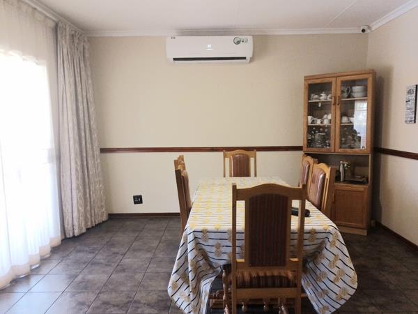 Four spacious bedrooms with laminated flooring, main-en-suite with shower, heater and extractor. Separate bathroom and guest toilet. The living area comprises of a large spacious lounge, jet master fireplace, separate dining room, leading to patio that overlooks a sparkling swimming pool.