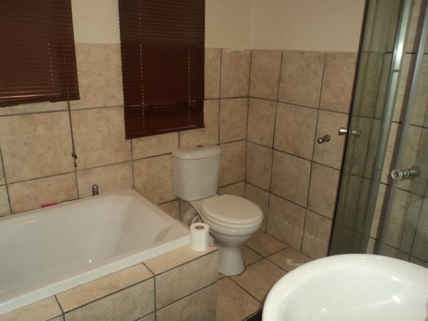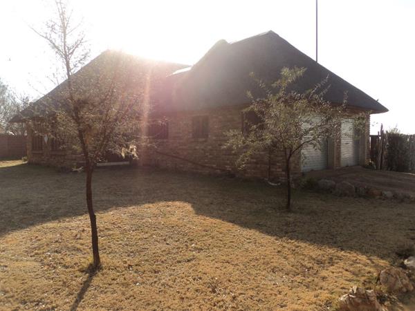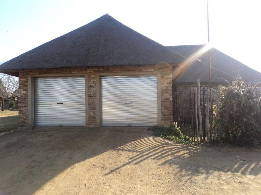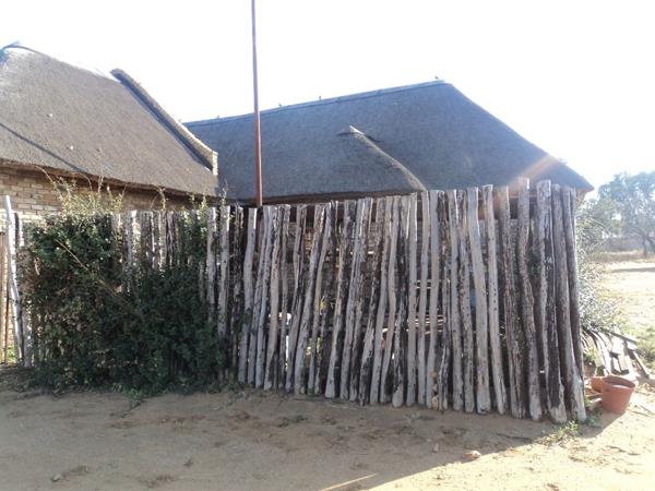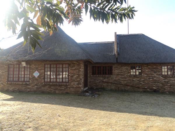 Main bedroom has ensuite bathroom and other two bedrooms share a bathroom. Small enclosed patio area to braai. Double garage leading to kitchen . Pallisade fencing around the property .Newly thatched roof