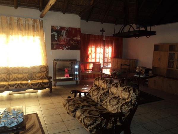 Lovely thatched home with very spacious openplan lounge and dining area leading to the kitchen.