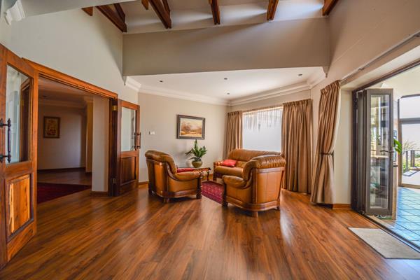 Single Story Home. This beautiful home is build on a single level, making it perfect for someone not yet ready to scale down but have to start thinking movability. Upon entering you will enter into entrance hall with exposed wood. Tis leads to dining, braai area and living room. The house is divided into 2 wings, on the one side you will have main en-suite bedroom and kitchen and on the other side 3 bedrooms for when the kids decides to visit.