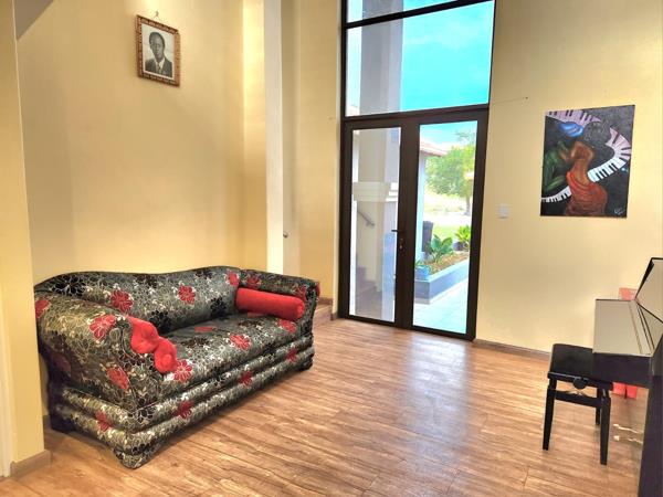 As you enter the home, you''re greeted by a grand double-volume entrance hall that sets the tone for the spacious and inviting interior. The modern open-plan kitchen, complete with a walk-in pantry and a scullery, is perfect for culinary enthusiasts. The main bedroom features a walk-in closet, offering ample storage space.