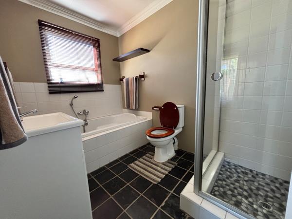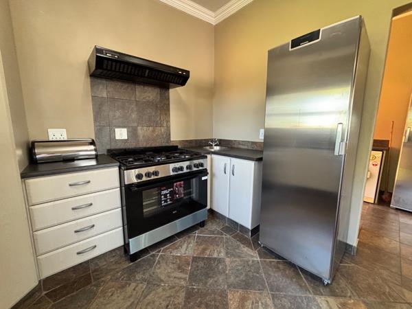 The living areas are open-plan and have stack doors that open to a large undercover patio with built in braai.