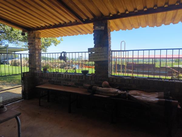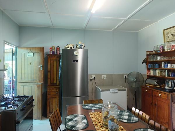 The main home features a carport with parking for up to four vehicles and is secured with electric fencing. A covered braai area, adjoined to the house, includes a built-in braai, power, and paving, making it an ideal space for entertaining guests. Roller curtain doors and gauze windows ensure comfort, and the kitchen is in excellent condition, complete with a gas oven.