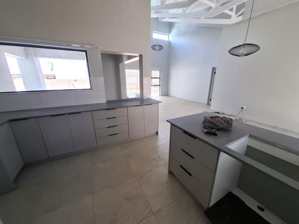 Step into this stunning home where modern elegance meets comfort. As you enter, you are welcomed into a spacious open-plan lounge, dining area, and kitchen, all designed for effortless living. The double-volume ceilings enhance the sense of space, while natural light fills the interiors, creating a warm and inviting atmosphere. A sliding door leads from the living area onto a charming patio and well-kept garden, perfect for relaxing or entertaining.