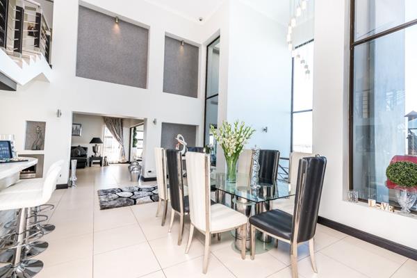 From the moment you arrive, the tone is set by a graceful fountain and grand entrance that opens into a beautifully proportioned double-volume foyer with an architectural staircase that anchors the space. Five generously sized en suite bedrooms ensure comfort and privacy, while the intimate TV lounge with a fireplace leads naturally into expansive living areas that flow onto a glass-framed pool deck with sweeping views of Bronkhorstspruit Dam.